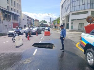 Sebuah mendapan jalan berlaku di Jalan Burma berhampiran simpang Jalan Transfer, Pulau Pinang โ ๏ธ keadaan ini amat membahayakan pengguna jalan raya ๐ pihak berkuasa segera bertindak dengan menempatkan anggota Warden Trafik MBPP serta Trafik PDRM ๐ฎ untuk mengawal aliran lalu lintas, semua laluan dari arah Jalan Penang sama ada dari KOMTAR mahupun dari IPK PDRM ke Jalan Burma telah ditutup sementara ๐ง kerja-kerja pembaikan turut dijalankan dengan segera ๐ง manakala kenderaan dialihkan melalui Jalan Lim Chwee Leong โก๏ธ papan tanda amaran serta kawalan trafik turut disediakan untuk keselamatan semua ๐ kejadian ini juga menjadi peringatan agar semua pemandu lebih berhati-hati โค๏ธ mematuhi arahan petugas di lokasi ๐ท dan jangan terburu-buru kerana keselamatan jauh lebih penting daripada kelajuan